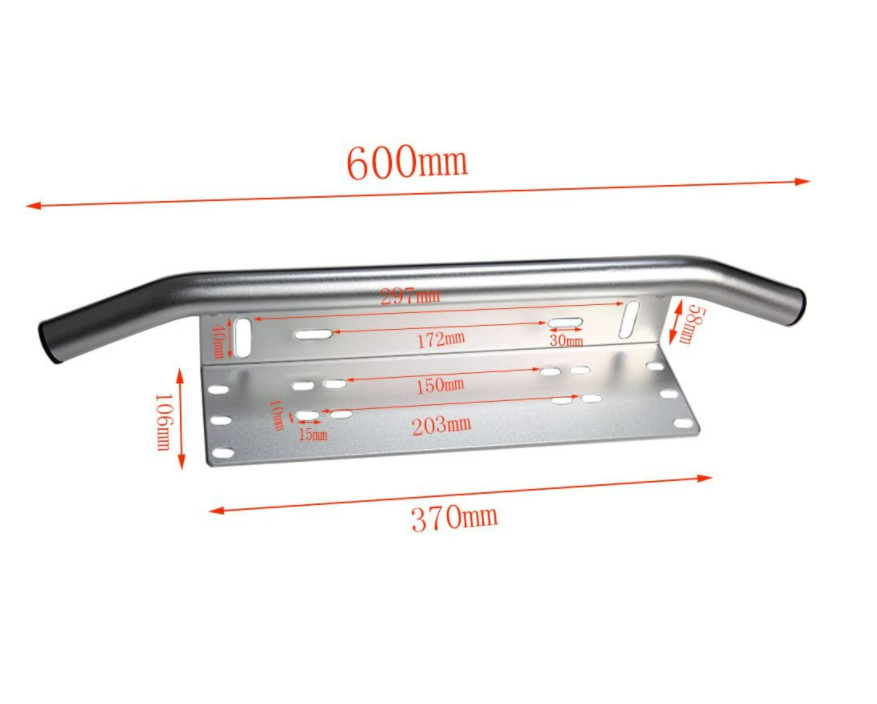 - 車のフロントバンパーに余分のマウントスペースを作成して、ナンバープレート・LED作業灯・バーライト・フォグランプ・サーチライトなどの取り付けができます。